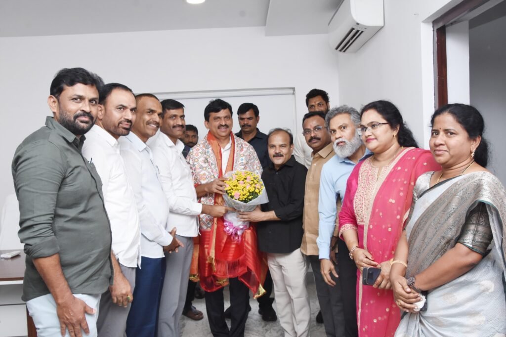 మంత్రి పొంగులేటి శ్రీనివాస్ రెడ్డిని కలిసి సత్కరిస్తున్న డిప్యూటీ కలెక్టర్స్ అసోసియేషన్ రాష్ట్ర అధ్యక్ష కార్యదర్శులు వి.లచ్చిరెడ్డి, కె.రామకృష్ణ, ఇతర ఉద్యోగ సంఘం నాయకులు.
