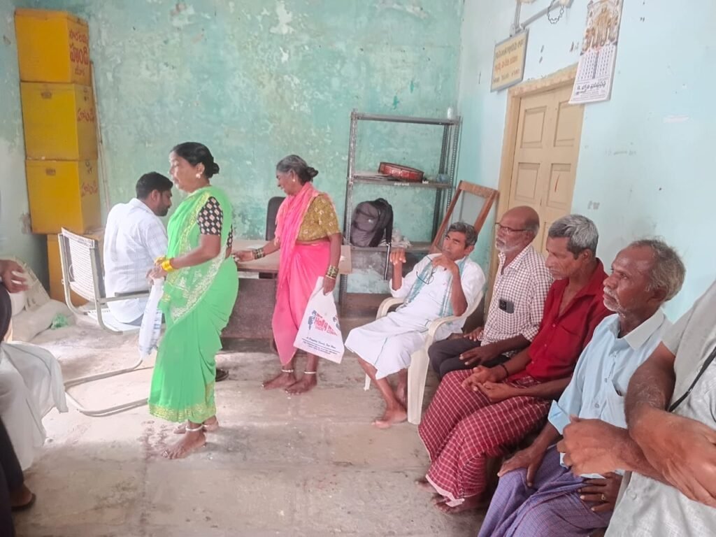 ఉచిత నేత్ర వైద్య శిబిరంకు వచ్చిన ప్రజలు