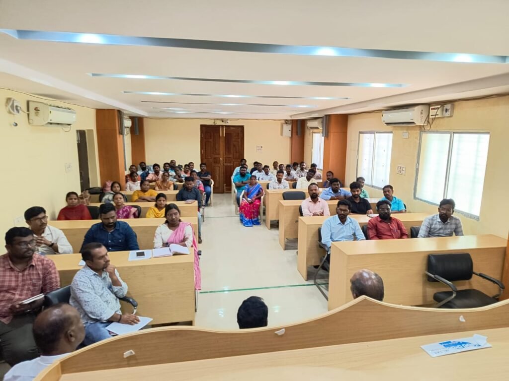 మున్సిపల్ సిబ్బందితో సమీక్ష సమావేశం నిర్వహిస్తున్న సిడిఎంఏ జాయింట్ డైరెక్టర్ బి శ్రీనివాస్..