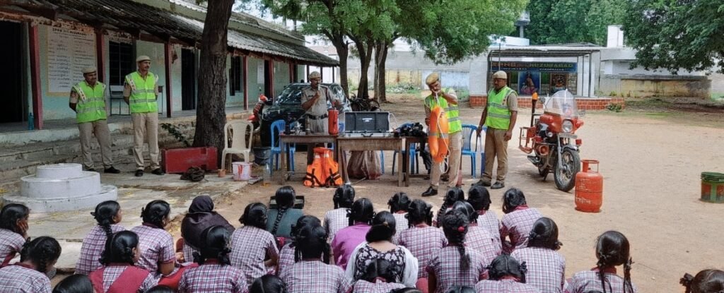 అగ్ని ప్రమాదాలపై విద్యార్థులకు అవగాహన కల్పిస్తున్న ఫైర్ సిబ్బంది..
