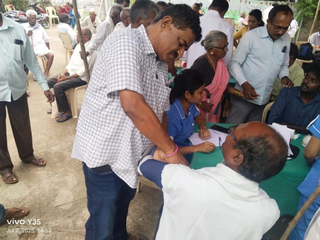కంటి వైద్య శిబిరం వద్ద రోగులను వివరాలను అడిగి తెలుసుకుంటున్న జయన్న ఫౌండేషన్ నిర్వాహకుడు జైపాల్ రెడ్డి