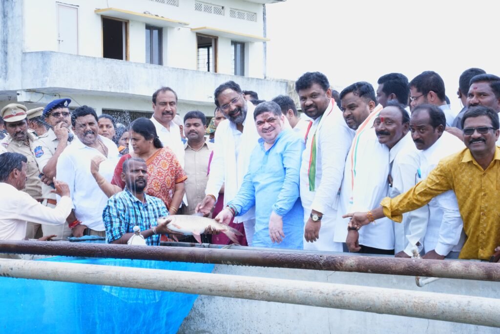 చేప పిల్లల పెంపకంను పరిశీలిస్తున్న మంత్రులు పొన్నం ప్రభాకర్, వాకిటి శ్రీహరి….