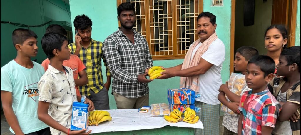 అనాధ పిల్లలకు పండ్లు, బ్రెడ్, పెన్నులు పంపిణీ..