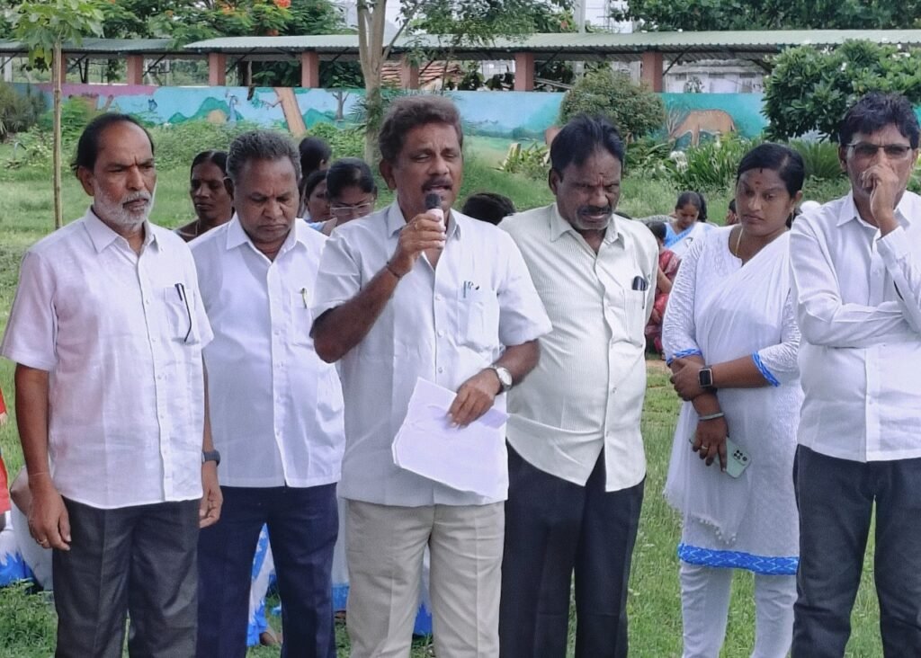 మున్సిపల్ ఉద్యోగులు కార్మికులను, సిఐటియు ను ఉద్దేశించి మాట్లాడుతున్న టా ప్ర జిల్లా అధ్యక్షుడు చందుపట్ల జనార్ధన్..