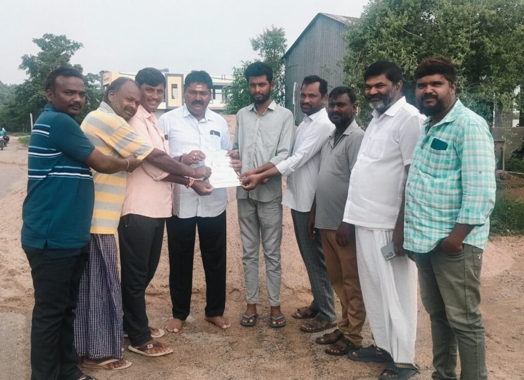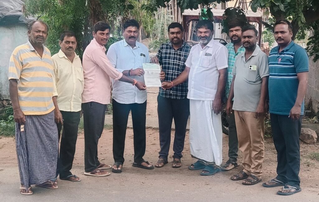 లబ్ధిదారులకు సీఎంఆర్ఎఫ్ చెక్కులను అందజేస్తున్న మార్కెట్ కమిటీ వైస్ చైర్మన్ ఐలయ్య, కాంగ్రెస్ నాయకులు..