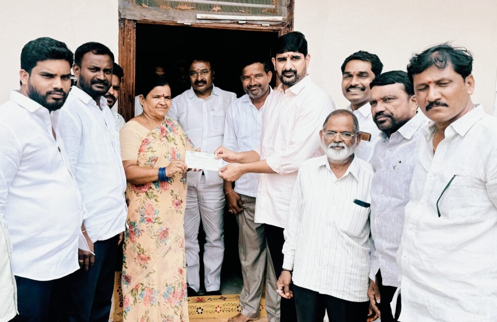 మృతి చెందిన బిఆర్ఎస్ కార్యకర్త కుటుంబానికి పార్టీ ఇన్సూరెన్స్ చెక్కును అందజేస్తున్న ఎమ్మెల్యే కౌశిక్ రెడ్డి..