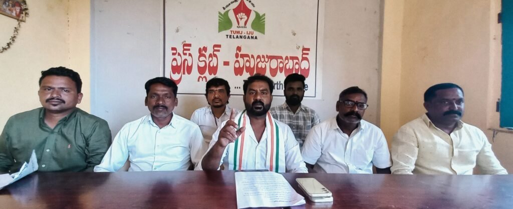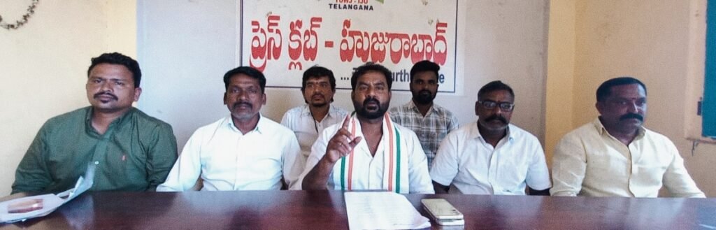 విలేకరుల సమావేశంలో మాట్లాడుతున్న కాంగ్రెస్ పార్టీ యువజన నాయకుడు సందమల్ల నరేష్, పక్కన నాయకులు..