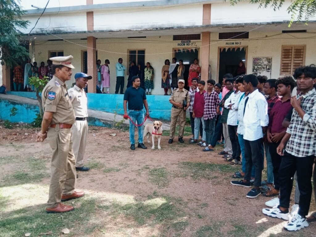 విద్యార్థులను ఉద్దేశించి మాట్లాడుతున్న సబ్ ఇన్స్పెక్టర్ ఎస్ఐ రాధాకిషన్, డాగ్ స్క్వాడ్ సిబ్బంది.