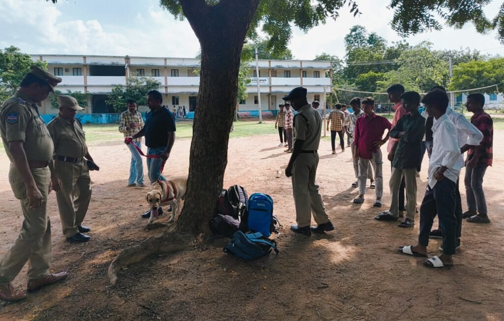 కళాశాల, పాఠశాల ఆవరణంలో క్షుణ్ణంగా తనిఖీలు చేస్తున్న పోలీసులు…
