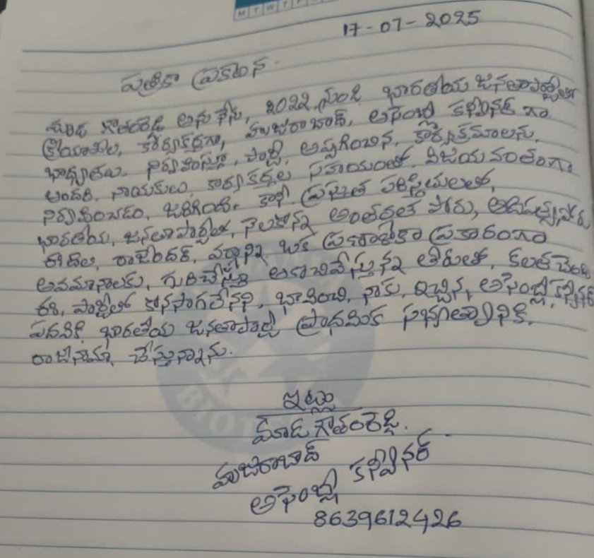 అసెంబ్లీ కన్వీనర్ మాడ గౌతంరెడ్డి రాజీరామా పత్రం..