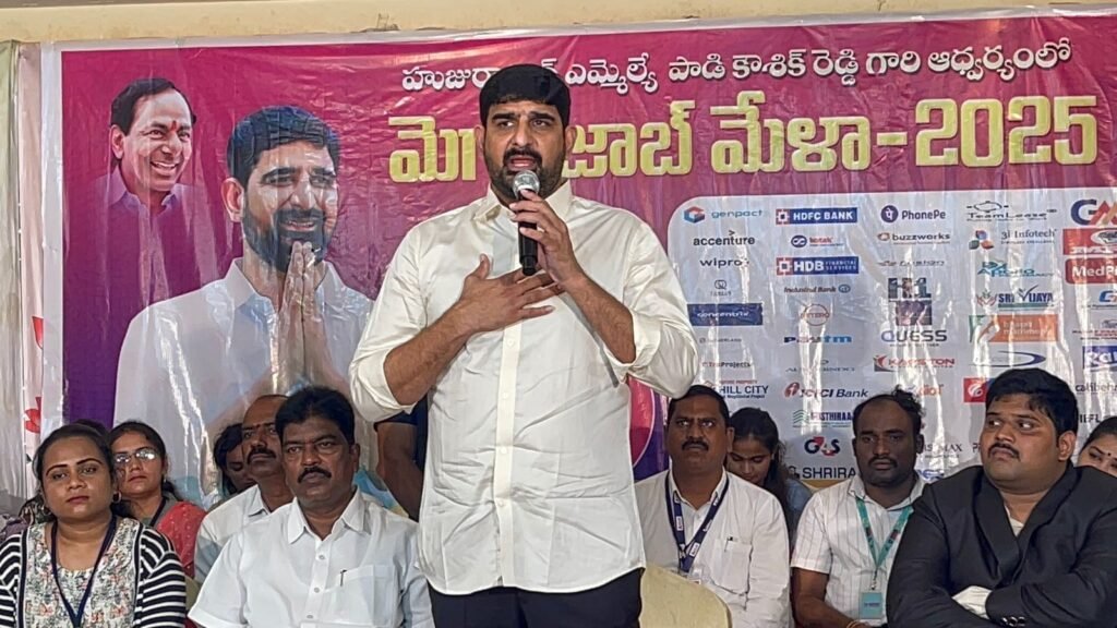 జాబ్ మేళా సమావేశంలో మాట్లాడుతున్న ఎమ్మెల్యే కౌశిక్ రెడ్డి..