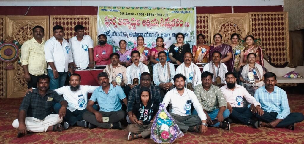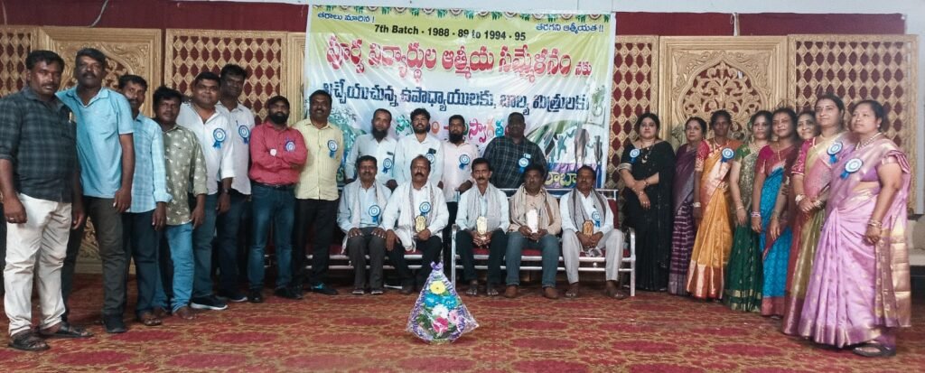మండల యాదగిరి, స్వర్ణోదయం ప్రతినిధి హుజురాబాద్: హుజూరాబాద్ పట్టణంలోని ప్రతాపసాయి గార్డెన్లో నిర్వహించిన విద్యనికేతన్ స్కూల్ 1994-1995 7th క్లాస్ పూర్వ విద్యార్థులు ఆత్మీయ సమ్మేళనన్ని ఘనంగా నిర్వహించారు. వివిధ వృత్తులు మరియు ఉద్యోగాలు చేస్తూ బిజీగా ఉన్నా వారంతా 30 ఏళ్ల తరువాత అందరూ ఒకే చోట చేరి రోజు అంతా ఉల్లాసంగా ఉత్సాహంగా ఆట పాటలతో గడిపారు. పాత జ్ఞాపకాలము నెమరు వేసుకున్నారు. ఈ కార్యక్రమంలో నాటి ఉపాధ్యాయులు మాధవరావు, సత్యనారాయణరెడ్డి, వెంకట్ ప్రసాద్, ముజమిల్ అహ్మద్, దుర్గాజీ, ఫరీదా, పూర్వ విద్యార్థులు హాజరయ్యారు.
