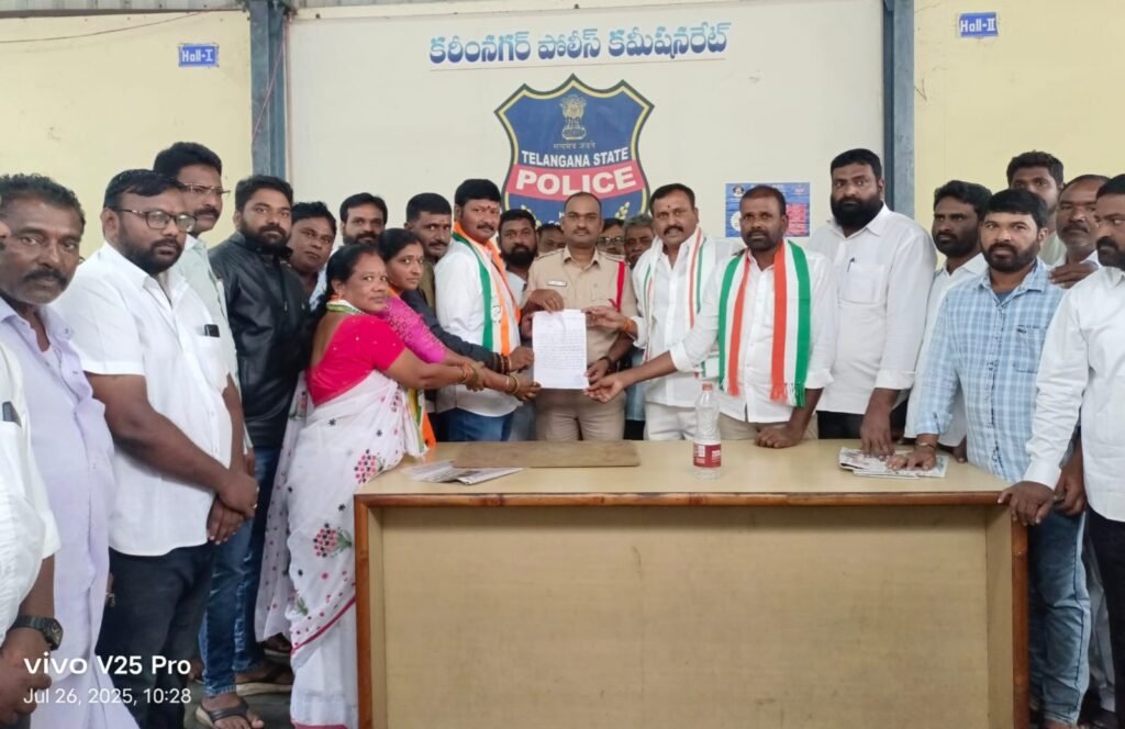 జమ్మికుంట సిఐ రామకృష్ణ గౌడ్ కు ఎమ్మెల్యే కౌశిక్ రెడ్డి ఫిర్యాదు చేస్తున్న కాంగ్రెస్ నాయకులు, కార్యకర్తలు..