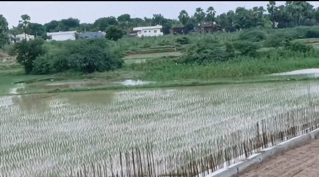 డిపిఎల్ కంపెనీ రోడ్డు నిర్మాణంలో నిర్లక్ష్యం వహించడంతో వరద నీరు పొలాలకు వెళ్లి పంటపొలాలు పాడవుతున్న దృశ్యాలు..