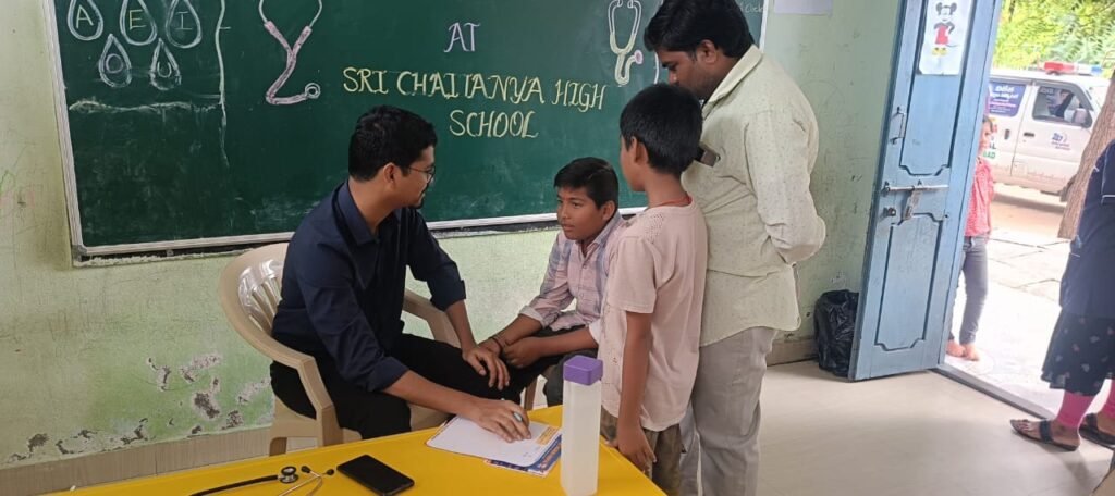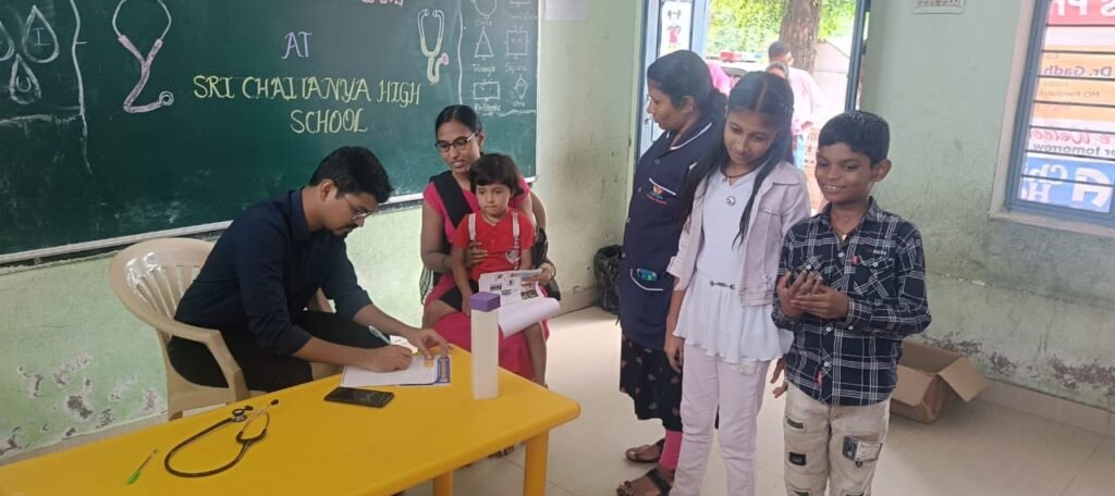 మండల యాదగిరి, స్వర్ణోదయం ప్రతినిధి హుజురాబాద్: హుజూరాబాద్ పట్టణంలోని శ్రీ చైతన్య హై స్కూల్ లో ఆదివారం ఉచిత హెల్త్ చెకప్ ని, విజేత చిల్డ్రన్స్ హాస్పిటల్ వారి సహకారంతో నిర్వహించామని శ్రీ చైతన్య హై స్కూల్ హుజురాబాద్ బ్రాంచి ఏజీఎం మధుసూదన్ రెడ్డి, ప్రిన్సిపల్ మాట్ల సందీప్ కుమార్, డీన్ శ్రీనివాస్, ఏవో శ్రీకాంత్ లు తెలిపారు. ఈ సందర్భంగా పాఠశాలకి పిల్లల వైద్య నిపుణుడైన గాధం రవివర్మ ఏండి. పెడియాట్రిక్స్ పిల్లలను పరీక్షించి, సమస్యలు అడిగి తెలుసుకున్నారు. అదేవిధంగా సమస్యల ఆధారంగా పిల్లలకు ఉచిత మందులు అందించారు. అలాగే కంటి పరీక్షలు, రక్త నమూనాలు సేకరించి బ్లడ్ గ్రూప్ తెలియజేశారు. ఈ సందర్భంగా పిల్లల వైద్య నిపుణులు మాట్లాడుతూ విద్యార్థులు బలమైన ఆహారం తీసుకోవాలని, పిల్లలకు సెల్ ఫోన్ ని దూరంగా ఉంచాలని, అలాగే చిన్న సమస్యలకు సైతం సొంత వైద్యం చేయకుండా డాక్టర్ గారిని సంప్రదించాలని విద్యార్థుల తల్లిదండ్రులకు తెలియజేసారు. తదనంతరం శ్రీ చైతన్య హై స్కూల్ హుజురాబాద్ సిబ్బంది మాట్లాడుతూ పిల్లలు సరైన ఆహారం తీసుకుంటే ఎదుగుదల బాగుంటుంది అని, ఎలాంటి ఆరోగ్య సమస్యలు ఉండవని, అలాంటప్పుడే విద్యార్థుల హాజరు శాతం కూడా ఎక్కువ నమోదు అయ్యే అవకాశం ఉందని, అప్పుడే చక్కగా నేర్చుకుంటారని తెలియజేశారు. తదనంతరం హాస్పిటల్ మేనేజ్మెంట్ ఎల్క దేవేందర్ రెడ్డి మాట్లాడుతూ ఇలాంటి ఉచిత వైద్య శిబిరాలు మరిన్ని విద్యాసంస్థల్లో నిర్వహించి చిన్నపిల్లలకి తెలియకుండా వచ్చేటువంటి కంటి చూపు సమస్యలు, పోషకాహార లోపం మరియు ఇతర వైద్య సమస్యలు గుర్తించి పిల్లలు ఆరోగ్యంగా ఉండాలనే ఆశయంతో ముందుకు వెళ్తున్నాము అని వివరించారు. ఇంతటి గొప్ప కార్యక్రమాన్ని నిర్వహించిన డాక్టర్ రవివర్మ, అలాగే హాస్పిటల్ యాజమాన్యాన్ని స్కూల్ పెద్దలు అభినందించారు. ఈ కార్యక్రమంలో విజేత చిల్డ్రన్స్ హాస్పిటల్ హుజురాబాద్ నిర్వాహకులు ఎల్క దేవేందర్ రెడ్డి, ఎడవెల్లి విష్ణువర్ధన్ రెడ్డి, హాస్పిటల్ సిబ్బంది, మహాలక్ష్మి ఐ కేర్ నేత్ర వైద్యులు నల్ల కేసరినందన్ తదితరులు పాల్గొన్నారు.