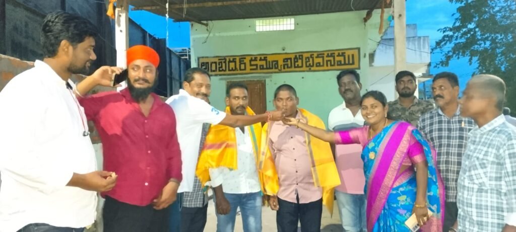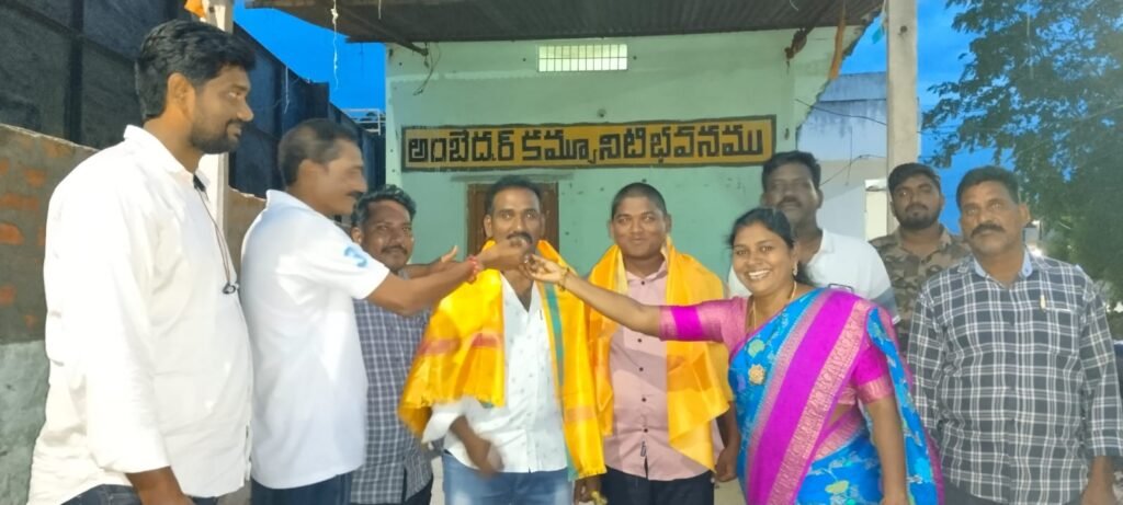 అంబేద్కర్ సంఘం నూతన కమిటీని అభినందిస్తున్న పుష్పలత, గ్రామ పెద్దలు..