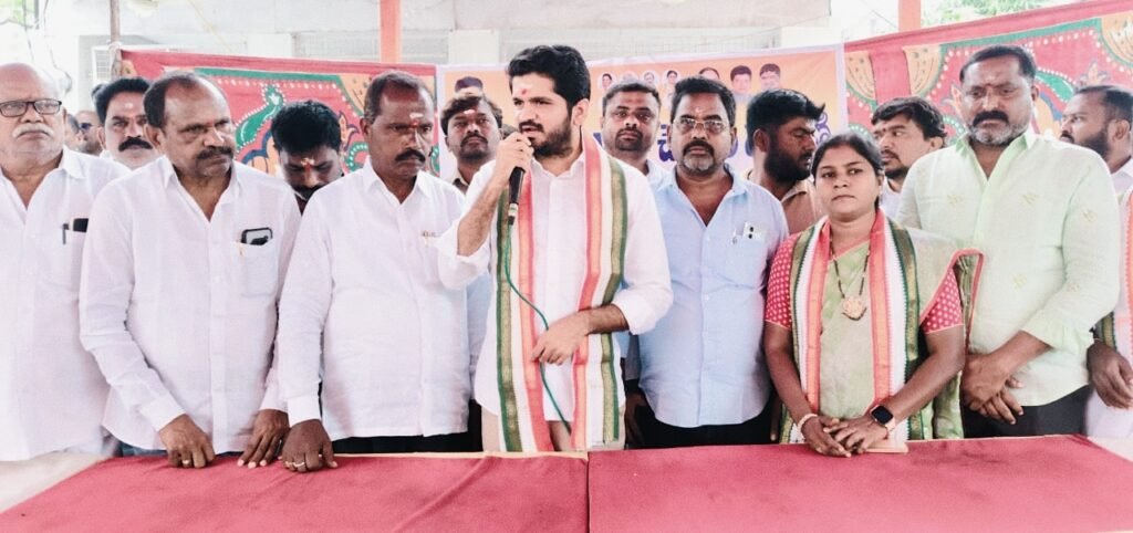 కార్యకర్తలను ఉద్దేశించి మాట్లాడుతున్న కాంగ్రెస్ పార్టీ నియోజకవర్గ ఇన్చార్జి ప్రణవ్..