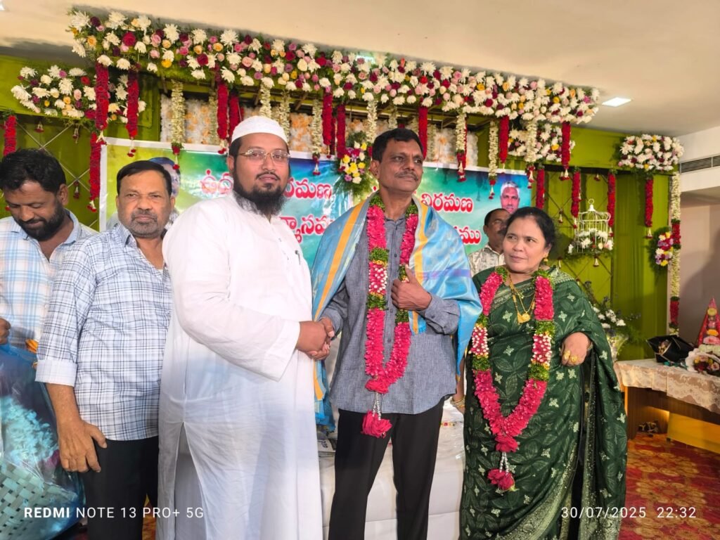 మండల యాదగిరి, స్వర్ణోదయం ప్రతినిధి హుజురాబాద్: కరీంనగర్ లో నీతి నిజాయితీతో 34 సంవత్సరాలు పనిచేసిన ఇంటలిజెన్స్ అడిషనల్ ఎస్పీ మహమ్మద్ గౌస్ బాబా పదవి విరమణ చేసిన సందర్భంగా తెలంగాణ ఎంప్లాయిస్ గేజిటెడ్ ఆఫీసర్స్ నాన్ గెజిటెడ్ టీచర్స్ వర్కర్స్ అండ్ పెన్షనర్స్ జాయింట్ యాక్షన్ కమిటీ రాష్ట్ర కార్యదర్శి మహమ్మద్ ముజాహిద్ హుస్సేన్ ఆధ్వర్యంలో అడిషనల్ ఎస్పీ మహమ్మద్ గౌస్ బాబాకు శాలువాతో పుష్పగుచ్చాలు ఇచ్చి శుభాకాంక్షలు తెలియజేశారు. ఈ సందర్భంగా మహమ్మద్ ముజాహిద్ హుస్సేన్ మాట్లాడుతూ మొహమ్మద్ గౌస్ బాబా 1991 సంవత్సరంలో సబ్ ఇన్స్పెక్టర్ గా పదవి బాధ్యతలు చేపట్టి మొట్టమొదటి పోస్టు కమాన్ పూర్ అక్కడి నుండి సైదాపూర్ మరియు హుజురాబాద్ నుండి ఎస్బిఐ ఏసీబీ సీఐగా అక్కడనుండి ఇంటలిజెన్స్ అక్కడి నుండి హుజురాబాద్ రూరల్ సర్కిల్ ఇన్స్పెక్టర్ గా పని చేస్తూ ఏసిపి ప్రమోషన్ తీసుకొని మంచిర్యాల్ ఎసిపి గా అక్కడి నుండి మెట్టుపల్లి ఏసిపి పనిచేస్తూ అక్కడి నుండి బదిలీ కరీంనగర్ ఇంటలిజెన్స్ ఏసిపి గా పనిచేస్తూ అడిషనల్ ఎస్పీగా ప్రమోషన్ పొంది జులై 31 గురువారం రోజు పదవి విరమణ పొందిన మహమ్మద్ గౌస్ బాబా పోలీస్ శాఖలో 34 సంవత్సరాలు పని చేసిన ఎక్కడ పని చేసిన కూడా అక్కడి ప్రజలు ఈరోజు వరకు కూడా మొహమ్మద్ గౌస్ బాబాను గుర్తిస్తారు పోలీస్ శాఖలో నీతి నిజాయితీతో ఎంతో మంచి పేరు సంపాదించిన మహమ్మద్ గౌస్ బాబా ఈరోజు పదవి విరమణ పొందటం చాలా సంతోషం 34 సంవత్సరాలు పోలీస్ శాఖలో పనిచేసి పదవి విరమణ ఈరోజు పొందిన మహమ్మద్ గౌస్ బాబాకు పోలీస్ శాఖ ద్వారా 150 అవార్డులు పొందినారు డైరెక్టర్ జనరల్ ఆఫ్ పోలీస్ ఐజి, డిఐజి ,సిపి, ఎస్పీల చేతుల మీద ఎన్నో ప్రశ్న పత్రాలు అందుకున్నారన్నారు. ఇలాంటి నీతి నిజాయితీ పేరు గల అధికారిగా మహమ్మద్ గౌస్ బాబా పోలీస్ శాఖలో ఎంతో మంచి పేరు గుర్తింపు తెచ్చుకున్న అయినా 34 సంవత్సరాల సర్వీసులో ఒక గుంట భూమి కూడా కొనలేదనీ, సొంత ఇల్లు కూడా లేదు అన్నారు. కానీ అయినా పని చేసిన ప్రాంతాలలో అక్కడి ప్రజల హృదయాలలో పేరు, గుర్తింపు పొందిన వ్యక్తి మహమ్మద్ గౌస్ బాబా అని తెలంగాణ ఎంప్లాయిస్ గజిటెడ్ ఆఫీసర్స్ నాన్ గజిటెడ్ టీచర్స్ వర్కర్స్ అండ్ పెన్షనర్స్ జెయింట్ యాక్షన్ కమిటీ రాష్ట్ర కార్యదర్శి మహమ్మద్ ముజాహిద్ హుస్సేన్ తెలిపారు. మహమ్మద్ గౌస్ బాబా పదవి విరమణ కార్యక్రమానికి అన్ని డిపార్ట్మెంట్ల శాఖలకు చెందిన అధికారులు, పోలీస్ శాఖలో పనిచేస్తున్న లాండ్ ఆర్డర్, ఏసీబీ స్పెషల్ బ్రాంచ్, సిబిసి ఎడి ఇంటలిజెన్స్, ప్రజా ప్రతినిధులు పాల్గొనగా ముఖ్యఅతిథిగా హుస్నాబాద్ ఏసిపి సదానందం, స్పెషల్ బ్రాంచ్ ఏసిపి శ్రీనివాస్, మాజీ ఏసీబీ డిఎస్పి వెంకటరమణ, కరీంనగర్ టిఎన్జిఓ అధ్యక్షులు శ్రీనివాస్ ర