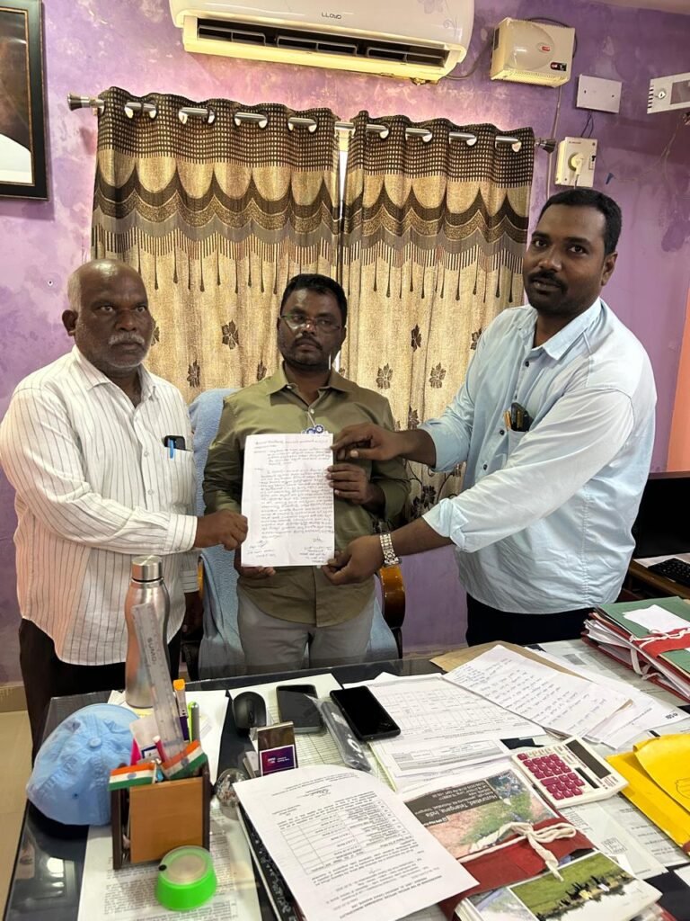 మున్సిపల్ కమిషనర్ సమ్మయ్యకు వినతిపత్రం అందజేస్తున్న వేల్పుల రత్నం, ఎండి కాలిద్ హుస్సేన్…
