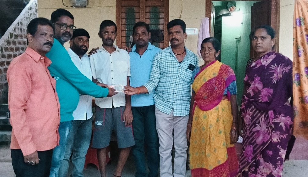 మండల యాదగిరి, స్వర్ణోదయం ప్రతినిధి హుజురాబాద్ ఆగస్టు 02: హుజురాబాద్ మండలం పెద్దపాపయ్యపల్లి గ్రామానికి చెందిన బండమీది కుమారస్వామి రోజు వారి కూలిగా సుతారి పనిచేసుకునేవాడు. గత మూడు నెలల క్రితం పని చేస్తుండగానే స్పృహ తప్పి పడిపోయాడు. అప్పుడు వెంటనే అతనిని హనుమకొండలోని ఓ ప్రైవేట్ హాస్పటల్ కి తీసుకెళ్లారు. అక్కడి డాక్టర్లు చూసి బ్రెయిన్ లో రక్తం బ్లీడింగ్ అవుతుందనీ వెంటనే హైదరాబాద్ కి తీసుకెళ్లాలని చెప్పారు. అక్కడి నుండి హైదరాబాద్ లో ప్రైవేట్ హాస్పిటల్ లో జాయిన్ చేశారు. అక్కడ దాదాపు పది లక్షల రూపాయల వరకు ఖర్చు అయింది, ఇంకా ఇతను పూర్తిగా కోలుకోలేదు. ఈ విషయం తెలిసి అతని దీనస్థితికి చలించిన పెద్ద పాపయ్యపల్లి పదవ తరగతి పూర్వ విద్యార్థులు 2001బ్యాచ్ మిత్రులు బండామీది కుమారస్వామికి రూ. 25 వేల రూపాయలు ఆర్థిక సహాయం చేసి చేయూతనందించారు.
