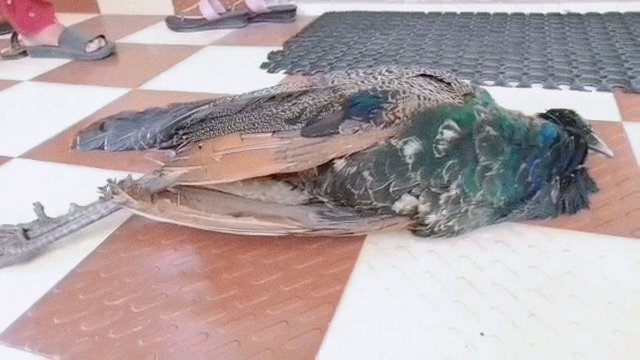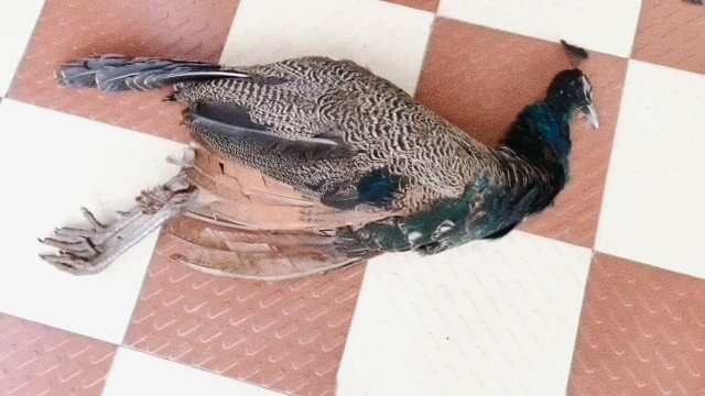 చనిపోయిన నెమలిని చూపిస్తున్న అటవీ శాఖ సిబ్బంది…