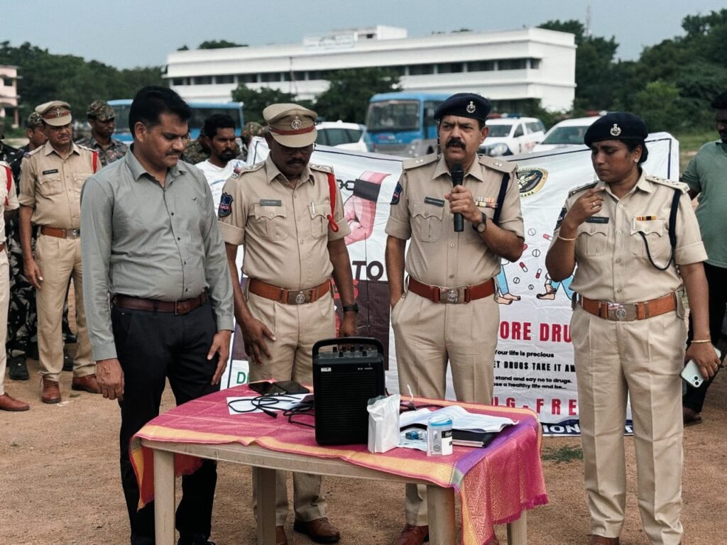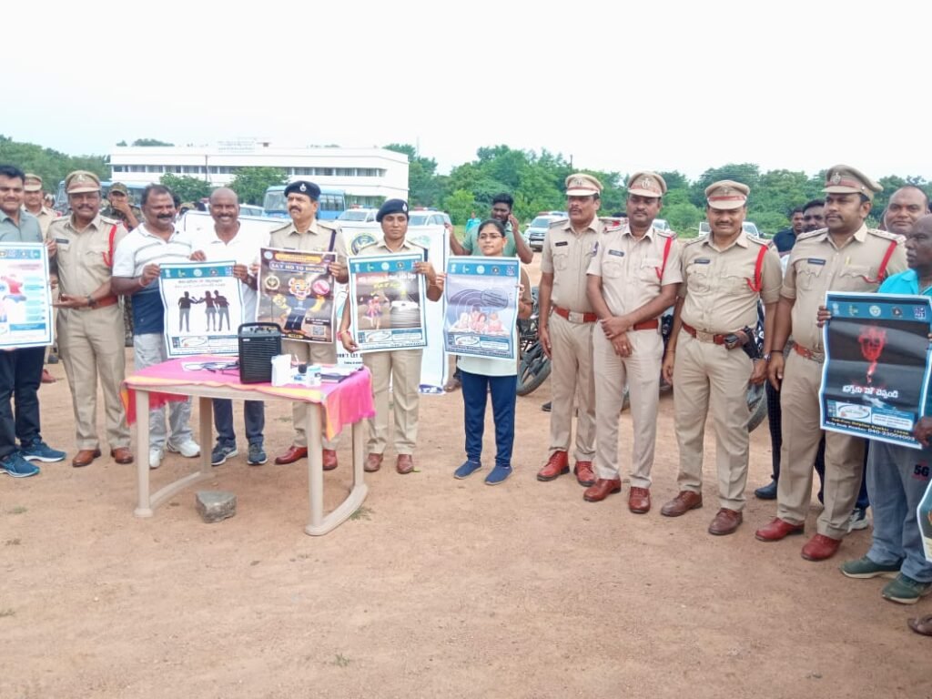 మత్తు పదార్థాల నిషేధంపై రూపొందించిన వాల్ పోస్టర్లు ఆవిష్కరిస్తున్న ఏ డిసిపి, ఏసిపి, సీఐలు, ప్రజాసంఘాల నాయకులు..