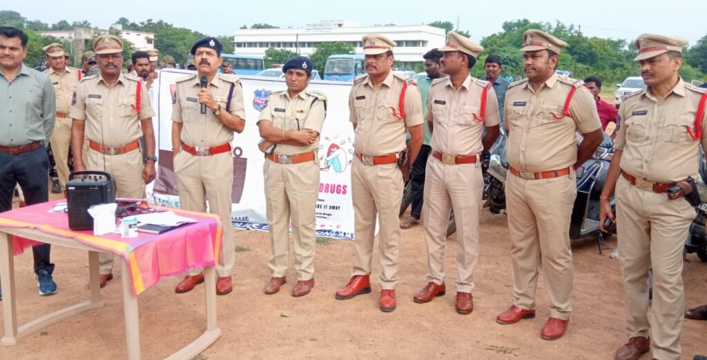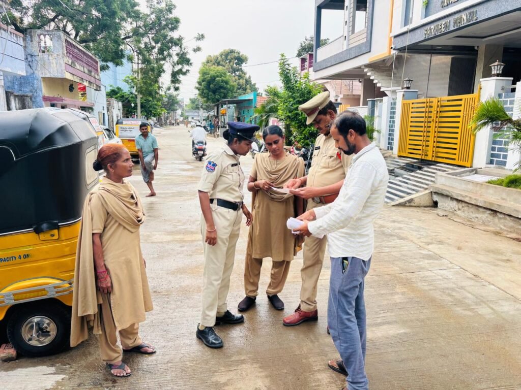 ప్రజలను ఉద్దేశించి మాట్లాడుతున్న అడిషనల్ డీసీపీ వెంకటరమణ, పక్కన ఏసిపి మాధవి, సిఐలు……