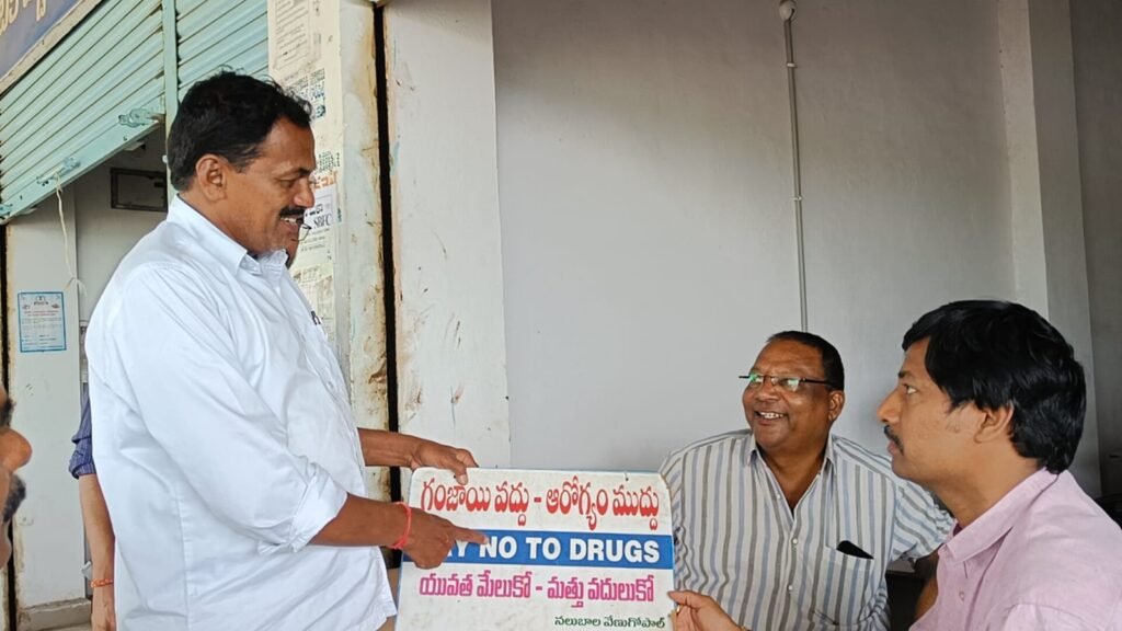 పలుచోట్ల పలువురికి డ్రగ్స్, గంజాయి సేవించడం వల్ల ఏర్పడే అనర్థాలను వివరిస్తూ ప్రచారం చేస్తున్న సామాజిక కార్యకర్త నలుబాల వేణుగోపాల్..