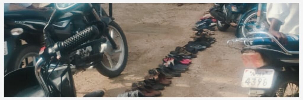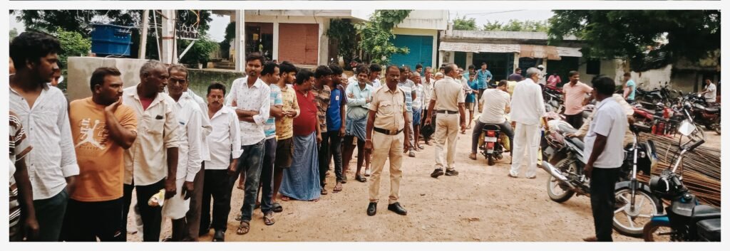 పోలీసులు చేరుకొని చెప్పులను తొలగించి, రైతులను లైన్లో నిలబెట్టిన దృశ్యం..