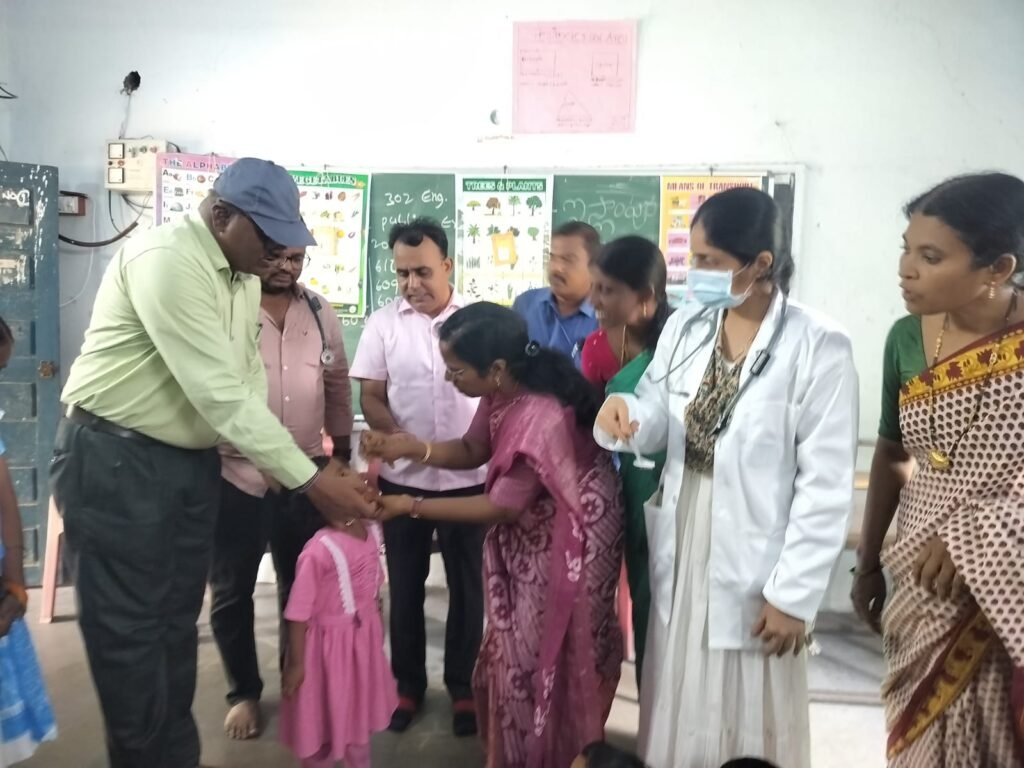 చిన్నారులకు ఆల్బెండజోళ్ళు మాత్రలు మింగిస్తున్న డిప్యూటీ డిఎంఅండ్ హెచ్ ఓ డాక్టర్ చందు, హెల్త్ ఎడ్యుకేటర్ ప్రతాప్….