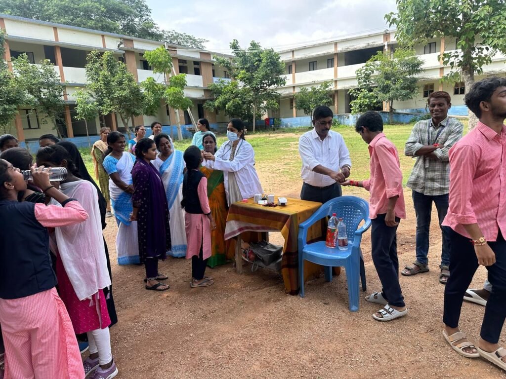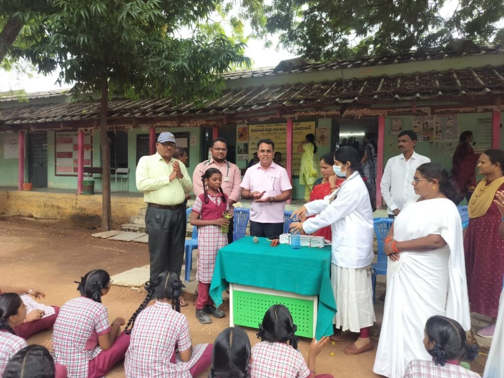 విద్యార్థులకు ఆల్బెండజోల్ మాత్రలు వేసి వారి ఉద్దేశించి మాట్లాడుతున్న డిప్యూటీ డిఎం అండ్ హెచ్ ఓ డాక్టర్ చందు….
