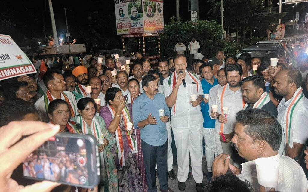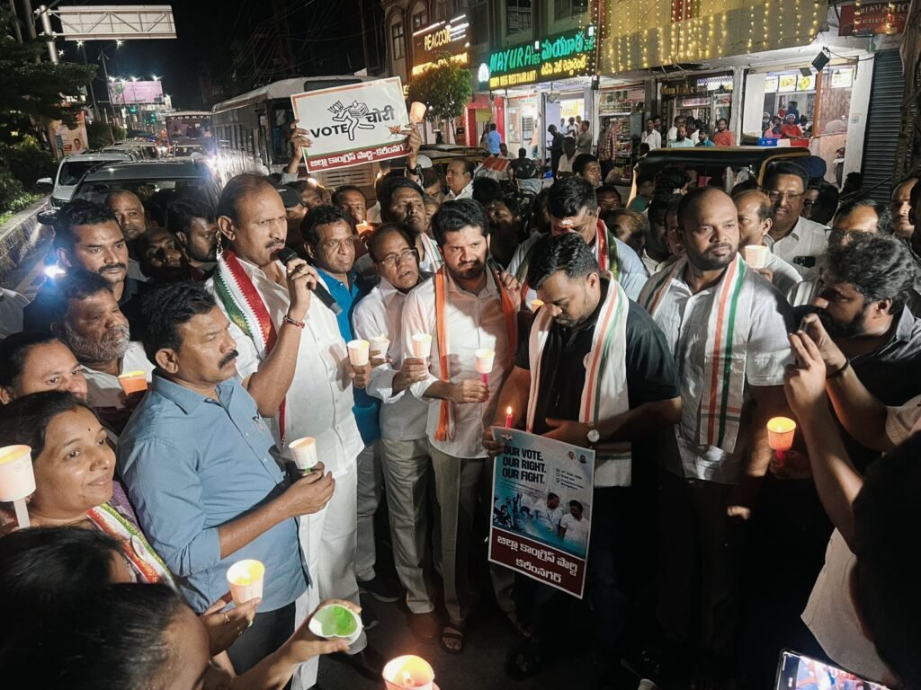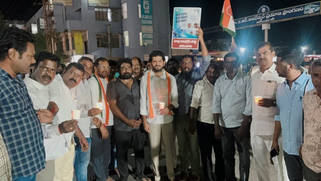 మండల యాదగిరి, స్వర్ణోదయం ప్రతినిధి కరీంనగర్: బీజేపీ పార్టీ దేశంలో అరాచకాలు సృష్టిస్తూ ప్రజాస్వామ్యాన్ని ఖూనీ చేస్తుందని, కాంగ్రెస్ పార్టీ అగ్రనాయకుడు రాహుల్ గాంధీ బీజేపీ చేసిన ఓట్లు దొంగతనాన్నీ కళ్ళకు కట్టినట్లు రుజువు చేశారని హుజూరాబాద్ కాంగ్రెస్ పార్టీ నియోజకవర్గ ఇంచార్జీ వొడితల ప్రణవ్ అన్నారు. గురువారం సాయంత్రం కరీంనగర్ పట్టణంలోని ఇందిరాచౌక్ వద్ద కరీంనగర్ డిసీసి అధ్యక్షుడు, మానకొండూరు శాసనసభ్యుడు కవ్వంపల్లి సత్యనారాయణ ఆధ్వర్యంలో జిల్లా నాయకత్వంలో కొవ్వతుల ర్యాలీని నిర్వహించారు. ఈ ర్యాలీలో పాల్గొన్న ఆయన మాట్లాడుతూ బీజేపీ పార్టీ ఓట్ల దొంగతనాన్నీ ఎలా చేస్తుందో ప్రజలకు వివరిస్థామని, రాబోయే ఎన్నికల్లో ప్రజలు బీజేపీకి బుద్ధిచెప్పే కాలం దగ్గరపడ్డదని అన్నారు.