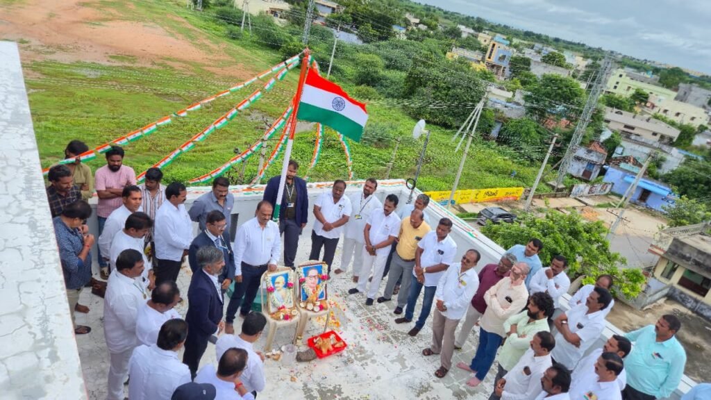 ఎల్ఐసి కార్యాలయం వద్ద జాతీయ జెండా ఎగురవేసి మాట్లాడుతున్న ఎల్ఐసి ఎస్బిఎం శ్రీధర్…