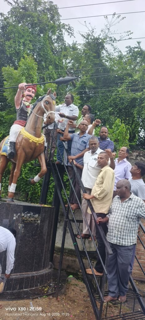 భూస్వాములు పెత్తందారులకు వ్యతిరేకంగా బడుగు బలహీన వర్గాలను ఐక్యం చేసి పోరాటం చేసిన గొప్ప పోరాటయోధుడు సర్దార్ సర్వాయి పాపన్న గౌడ్ 375 వ జయంతి వేడుకలు సోమవారం హుజూరాబాద్ పట్టణంలోని సైదాపూర్ క్రాస్ రోడ్ వద్ద గౌడ సంఘం, బీసీ సంఘాలు,ప్రజా సంఘాల ఆధ్వర్యంలోఘనంగా ఘనంగా జరిగాయి. ఈ సందర్భంగా వారు మాట్లాడుతూ… తెలంగాణ ప్రాంతంలోని సైదాపూర్ మండలం సర్వాయిపేట గ్రామంలో నుండి పోరాటయోధుడు సర్వాయి పాపన్న చేసిన పోరాటం దేశవ్యాప్తంగా పేరుపొందినన్నారు. భూస్వాముల పెత్తందారుల దౌర్జన్యాలకు వ్యతిరేకంగా అందరినీ ఐక్యం చేసి వారితో పోరాటం చేయడమే కాకుండా మొగల్ సామ్రాజ్య చక్రవర్తులపై యుద్ధం చేసి ఓడించి పరిపాలన చేసిన తెలంగాణ యుద్ధ వీరుడు పాపన్న అని గుర్తు చేసుకున్నారు. పాపన్న పోరాట తత్వాన్ని నేటి యువత స్ఫూర్తిగా తీసుకొని ముందుకు వెళ్లాలని అన్నారు. ఈ కార్యక్రమంలో గౌడ సంఘ నాయకులు న్యాయవాది ముక్కెర రాజు, మాజీ కౌన్సిలర్లు తాళ్లపెళ్లి శ్రీనివాస్ గౌడ్, చింత శ్రీనివాస్ గౌడ్, నాయకులు కెక్కెర్ల సారయ్య గౌడ్, వేల్పుల ప్రభాకర్, బీసీ ఆజాదీ ఫెడరేషన్ జిల్లా అధ్యక్షులు చిలుకమారి శ్రీనివాస్, డివిజన్ అధ్యక్షుడు పంజాల తిరుపతిగౌడ్, నాయకులు ఇప్పకాయల సాగర్, చిట్టంపల్లి నాగరాజు గౌడ్, సొల్లు మహేందర్, మార్త రవీందర్, తాండవరం విష్ణుమూర్తి, కుమార్, సంగెం సత్యనారాయణ తదితరులు పాల్గొన్నారు.