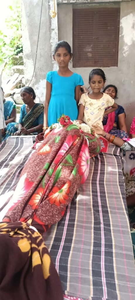 మృతి చెందిన తల్లి పార్థివ దేహం వద్ద దీనంగా రోధిస్తున్న కూతుర్లు రష్మిక (10) పరిణిక (7)లు