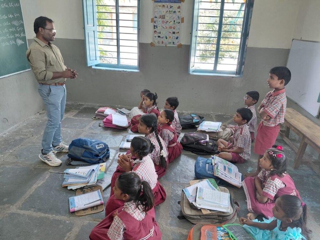 పిల్లలకు ఓపికగా పాఠాలు చెపుతున్న కమిషనర్ సమ్మయ్య