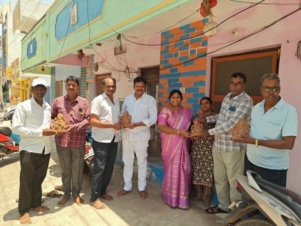 గ్రీన్ చాలెంజ్ లో భాగంగా మట్టి విగ్రహాల పంపిణీ చేస్తున్న మాజీ మున్సిపల్ చైర్పర్సన్ గందే రాధిక శ్రీనివాస్…