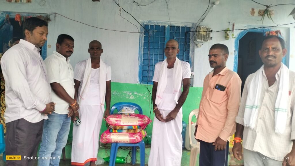 స్వరూప కుటుంబ సభ్యులను పరామర్శించి బియ్యం అందజేస్తున్న సగర సంఘ నాయకులు..