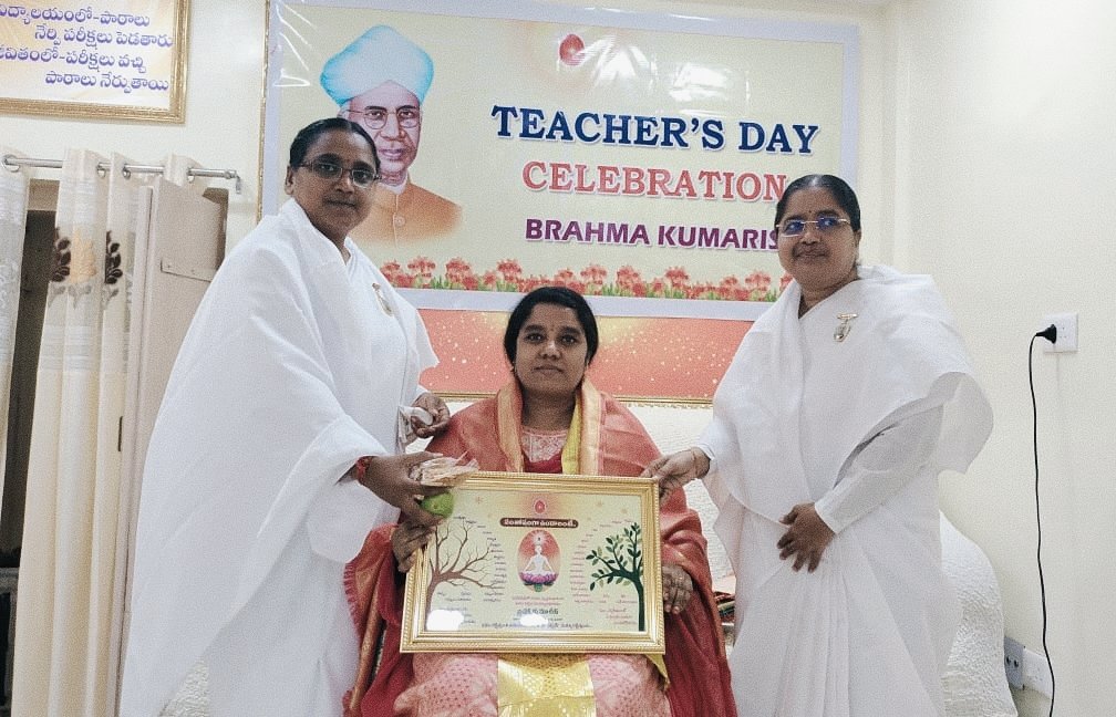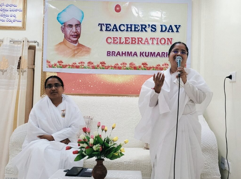 సమాజంలో ఉపాధ్యాయ వృత్తి ఎంతో గొప్పదని బ్రహ్మకుమారి కల్పనా అక్కయ్య అన్నారు. గురువారం హుజురాబాద్ పట్టణంలోని బ్రహ్మకుమారి సెంటర్ లో ఉపాధ్యాయ దినోత్సవాన్ని ఘనంగా నిర్వహించారు. ఈ సందర్భంగా బ్రహ్మకుమారిలు కల్పన, శ్రీవాణి లు మాట్లాడుతూ.. సమాజంలో తల్లిదండ్రుల తర్వాత గురువుకే స్థానం ఉందని పేర్కొన్నారు. ఉపాధ్యాయులను బ్రాహ్మతో పోల్చారని, గురువు విద్యార్థుల్లో చెడు ఆలోచనలను తొలగించి వారిని సన్మార్గంలో నడిపించే విధంగా కృషి చేయాలన్నారు. బ్రహ్మకుమారి ఆధ్వర్యంలో విలువలను పెంపొందిస్తూ ఆలోచన విధానాల్లో మార్పు వచ్చే విధంగా ఎన్నో సామాజిక, ఆధ్యాత్మిక కార్యక్రమాలు నిర్వహిస్తున్నామన్నారు. ముఖ్యంగా ప్రపంచంలో శాంతిని నెలకొల్పడం కోసం బ్రహ్మకుమారిస్ సంస్థ ఎంతగానో కృషి చేస్తున్నదన్నారు.