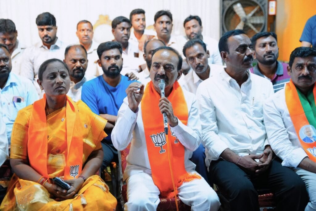 విలేకరుల సమావేశంలో మాట్లాడుతున్న మల్కాజ్గిరి ఎంపీ బీజేపీ జాతీయ నాయకుడు ఈటెల రాజేందర్..