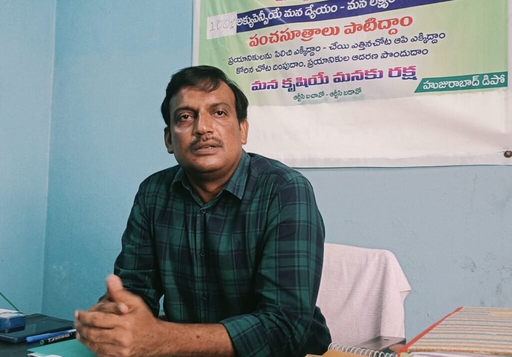 విలేకరుల సమావేశంలో మాట్లాడుతున్న ఆర్టీసీ డిపో మేనేజర్ రవీంద్రనాథ్..