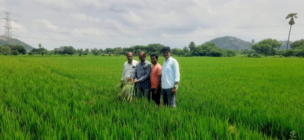 మండల యాదగిరి, స్వర్ణోదయం ప్రతినిధి హుజురాబాద్: మంగళవారం రోజున హుజురాబాద్ మండలము సిర్సపల్లి, వెంకట్రావుపల్లి, సింగపూర్ గ్రామాల్లో వరి పొలాలను కృషి విజ్ఞాన కేంద్రం శాస్త్రవేత్త డి శ్రీనివాసరెడ్డి మరియు వ్యవసాయ శాఖ వ్యవసాయ అధికారి భూమిరెడ్డి, మరియు విస్తరణాధికారి సతీష్ మరియు రైతులు వంగల వెంకటరెడ్డి సాయిరాం వరి పంటలను సందర్శించడం జరిగింది . దీనిలో భాగంగా వరిలో ఆకు నల్లి, పాము పొడ తెగులు, దోమపోటు గమనించడం జరిగింది. ఆకునల్లి నివారణకు మార్కెట్లో లభ్యమయ్యే ఒబెరాన్ మందును ఒక మిల్లీ లీటర్/ లీటర్ నీటికి కలిపి దీనితో పాటు టిల్ట్ అనే మందును 1 మిల్లీలీటర్ / లీటర్ వీటికి కలిపి పిచికారి చేయాలన్నారు. పాము పొడ తెగులు నివారణకు కాంటాఫ్ ప్లస్ -2 మిల్లి / లీటర్ నీటికి కలిపి పిచికారి చేయాలి లేదా నేటివో మందును -100గ్రా / ఎకరాకు కలిపి పిచికారి చేయాలనీ దోమపోటు నివారణకు చెస్-120గ్రా / ఎకరాకు లేదా పెక్సలాన్ -97 మిల్లి / ఎకరాకు కలిపి పంట పైనుండి కింది వరకు తడిచేలా పిచికారి చేయాలి పైన తెలిపిన మందులను ముందు జాగ్రత్తగా పిచికారి చేస్తే రైతులు పెట్టుబడి తగ్గించి అధిక దిగుబడులు సాధించవచ్చు అని అన్నారు.
