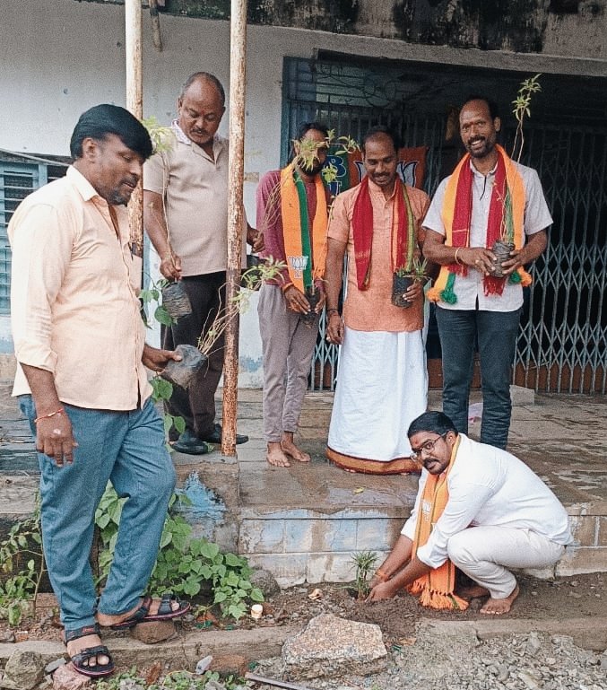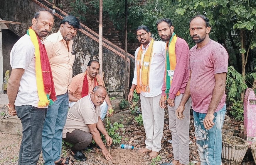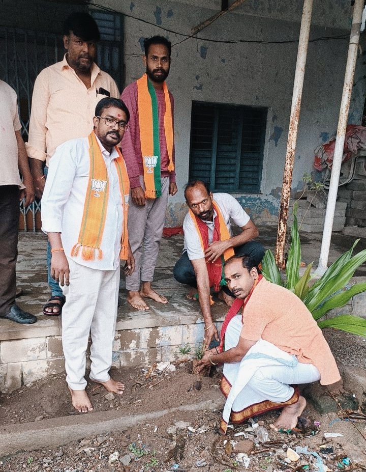 మొక్కలు నాటుతున్న బిజెపి పట్టణ అధ్యక్షుడు రాజు..