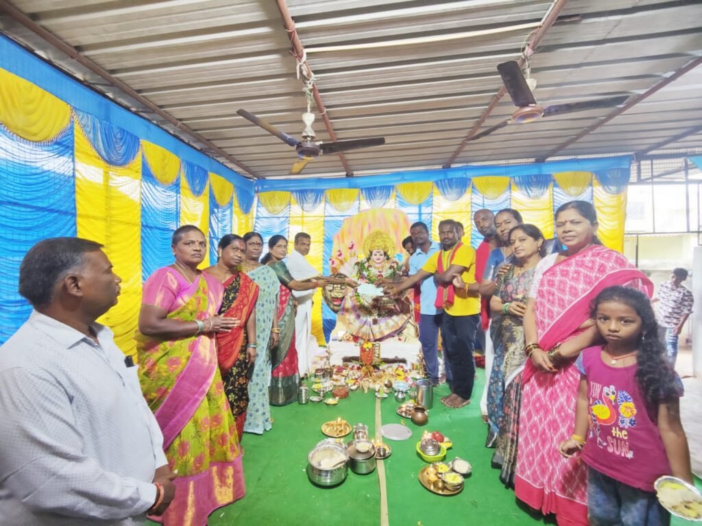 మండల యాదగిరి, స్వర్ణోదయం ప్రతినిధి హుజురాబాద్: హుజురాబాద్ మున్సిపల్ పరిధిలోని 26వ వార్డు లో గల పాత వెంకటేశ్వర టాకీస్ లో 8 రోజులుగా చిన్న బతుకమ్మ వేడుకలు ఘనంగా నిర్వహించారు. నిత్యం ఒక చీర బహుమతిగా అందచేయడమే గాకుండా, దాతల సహాయంతో రోజు రెండు రకాల ప్రసాదాలు బతుకమ్మ వేడుకల్లో పాల్గొన్న మహిళలకు అందచేశారు. ఎంగిలిపూల బతుకమ్మ రోజు మున్సిపల్ ఆధ్వర్యంలో ఏర్పాటు చేయగా, మరుసటి రోజు నుండి మాజీ కౌన్సిలర్ కేసిరెడ్డి లావణ్య – నర్సిహారెడ్డిల ఆధ్వర్యంలో ఏర్పాటు చేసి చిన్న బతుకమ్మ వేడుకలు అట్టహాసంగా నిర్వహించారు. మైక్ , లైటింగ్, మంచి నీటి సౌకర్యంతో పాటు, ప్రసాదం పంపిణీ చేసి వార్డు ప్రజల మన్ననలు పొందారు. మొదటి రోజు చీర బహుమతి ని కమిషనర్ సమ్మయ్య అందచేయగా, తర్వాత రోజు నుండి లావణ్య చేతుల మీదుగా అందచేశారు. చిన్న బతుకమ్మ చివరి రోజు స్థానిక సుజాత హాస్పిటల్ వారి సౌజన్యంతో 5 చీరలు డ్రాలో వెళ్ళిన మహిళలకు బహుమతిగా అందచేశారు. అదే విధంగా వెంకటేశ్వర టాకీస్ లో రుద్ర యూత్ అసోసియేషన్ ఆధ్వర్యంలో ఏర్పాటు చేసిన దుర్గామాత సన్నిధిలో ఆదివారం అన్నదానం నిర్వహించారు. మాజీ కౌన్సిలర్ కేసిరెడ్డి లావణ్య నర్సిహారెడ్డి ఆధ్వర్యంలో రుద్ర యూత్ అసోసియేషన్ ఈ అన్నదానం కార్యక్రమం ఘనంగా నిర్వహించారు. వార్డులోని ప్రజలు, వ్యాపారులు, హమాలీ, గుమాస్తాలు తదితరులు పాల్గొన్నారు. సుమారు మూడు వందల మంది పాల్గొన్నారు. దుర్గామాత ఏర్పాట్ల కోసం రూ.10,116 మాజీ కౌన్సిలర్ కేసిరెడ్డి లావణ్య యూత్ అసోసియేషన్ సభ్యులకు అందచేశారు. ఈ కార్యక్రమంలో ఇనుగాల గోవర్దన్, సిహెచ్ శ్రీనివాస్ రెడ్డి, ముషం వెంకన్న, పుల్లూరి శ్రీకాంత్, ఇల్లందుల తిరుపతి, భూపతి వెంకటరమణ, పత్తి శ్రీరాంరెడ్డి, భాషబత్తిని సతీష్, కన్నూరీ సురేష్, నవీన్, కృష్ణ, అనీల్ , రవీంద్రచారి, అనుదీప్, భాస్కర్, కుమార్ తదితరుల ఆధ్వర్యంలో ఏర్పాటు చేశారు.