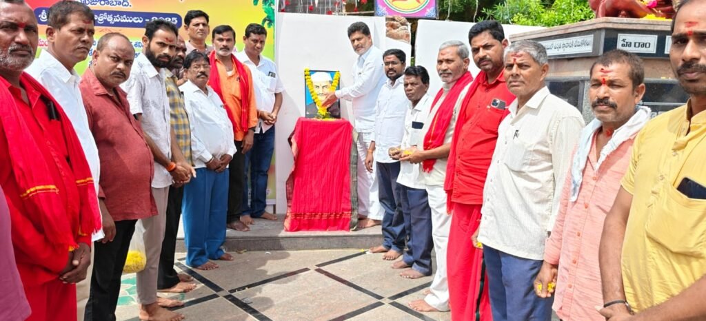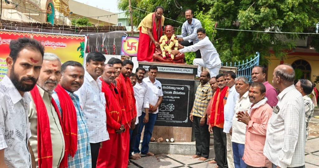 మహాత్మా గాంధీ విగ్రహానికి పూలమాలల అర్పిస్తున్న బిజెపి జిల్లా అధ్యక్షుడు, నాయకులు..