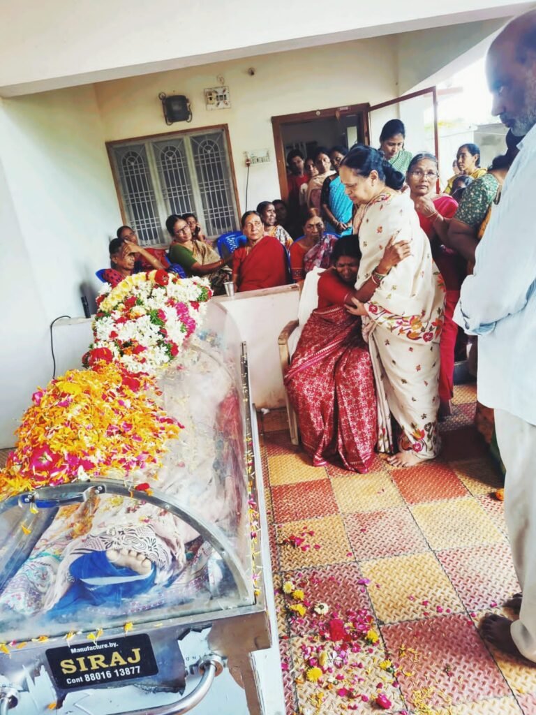 బక్కారెడ్డి మృతదేహంపై పూలమాల వేసే నివాళులర్పించిన అనంతరం ఆయన సతీమణి మాజీ సర్పంచ్ ప్రభావతిరెడ్డిని ఓదార్చుతున్న మాజీ రాజ్యసభ సభ్యుడు కెప్టెన్ లక్ష్మీకాంతారావు, ఆయన సతీమణి మాజీ ఎంపీపీ సరోజినీదేవి..