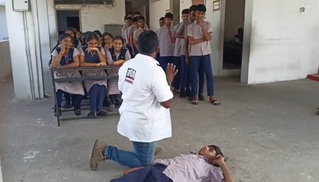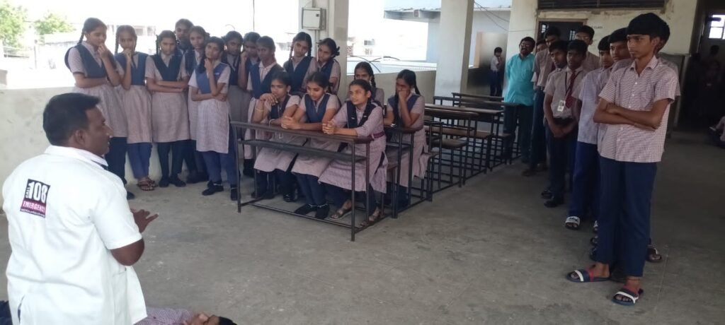 సిపిఆర్ పై విద్యార్థులకు అవగాహన కల్పిస్తున్న 108 సిబ్బంది..