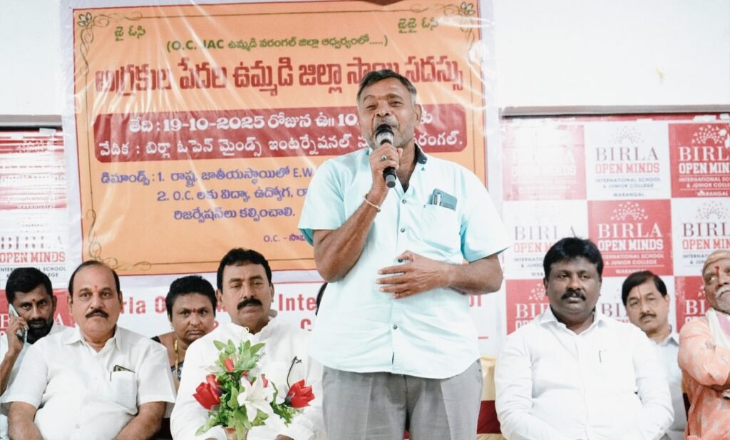 ఆదివారం వరంగల్ లో ఓసి జెఎసి ఉమ్మడి జిల్లా కమిటీ ఆధ్వర్యంలో నిర్వహించిన వివిధ జిల్లాల రాష్ట్ర ప్రతినిధుల సభకు రాష్ట్ర కన్వీనర్ గోపి జయపాల్ రెడ్డి అధ్యక్షత వహించగా ముఖ్య అతిథిగా ఓసి సామాజిక సంక్షేమ సంఘాల సమాఖ్య జాతీయ అధ్యక్షుడు పోలాడి రామారావు హాజరై మాట్లాడుతూ తాము ఏరాజకీయ పార్టీలకు ఏ కులాలకు ఏ మతాలకు వ్యతిరేకం కాదని అన్ని కులాల జనాభా దామాషా ప్రకారం ఆర్థిక స్థితి గతుల ఆధారంగా అన్ని వర్గాలకు సమన్యాయం జరగాలన్నదే తమ ఓసి సంఘాల సమాఖ్య ధ్యేయమన్నారు.