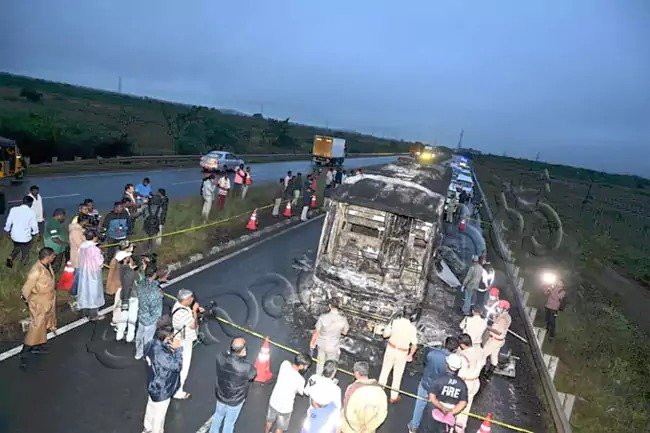 స్వర్ణోదయం ప్రతినిధి హైదరాబాద్: హైదరాబాద్ నుంచి బెంగుళూరు వెళుతున్న ప్రైవేటు ట్రావెల్స్ బస్సు కర్నూలు జిల్లా చిన్నటేకూరు వద్ద ఘోర ప్రమాదానికి గురైన సంఘటనపై ముఖ్యమంత్రి ఎ రేవంత్ రెడ్డి తీవ్ర దిగ్భ్రాంతిని వ్యక్తం చేశారు. ఆంధ్రప్రదేశ్ అధికారులతో మాట్లాడి అవసరమైన సహాయ చర్యలు తీసుకోవాలని రాష్ట్ర అధికారులను ఆదేశించారు. ఈ ఘటనలో మరణించిన కుటుంబాలకు తీవ్ర సంతాపం తెలిపారు.