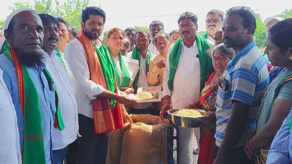 కొనుగోలు కేంద్రం ప్రారంభించి ధాన్యం జోకుతున్న కాంగ్రెస్ నేత ప్రణవ్..